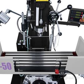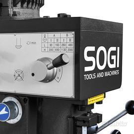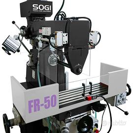 La fresatrice SOGI FR-50 è una macchina utensile tradizionale e compatta, in grado di eseguire forature, alesature e fresature (con l'ausilio di utensili a candela, ad inserto o a disco) su materiali quali ghisa e acciaio. Grazie alle molteplici funzionalità esplicabili da due mandrini, uno verticale l'altro orizzontale, la fresatrice SOGI FR-50 risponde alle più svariate esigenze lavorative.
