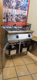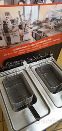 FRIGGITRICE professionale ELETTRICA inox SERIE 70 da 15+15 LITRI, completa di cestelli, coperchi, supporti, vasche raccogli oli e rubinetti di scarico.