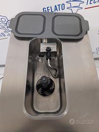 La macchina è dotata di pompa e agitatore direttamente in vasca, con la sua alimentazione a 220v e raffreddamento ad aria di carico e scarico di acqua. Può essere facilmente posizionata ovunque, può essere sfruttata per i chioschi, sagre, feste o messa subito fuori dal locale. Ottima sia per yogurterie, gelaterie o bar.