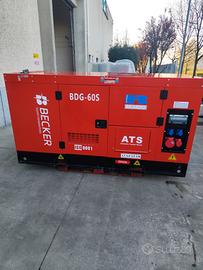 GENERATORE DI CORRENTE DIESEL (MAI USATO) MARCA : BECKER MODELLO : BDG-60S POTENZA NOMINALE: 50 KW / 62,5 KVA MOTORE: DIESEL 4 CILINDRI RAFFREDDATO A LIQUIDO POTENZA MOTORE: 66 KW ( 90 HP) TENSIONE: 230V/400V FREQUENZA: 50 HZ SISTEMA ATS : SI (AUTOMATICO) PRESE DISPONIBILI : 2X 16 A(230 V) 1X 32 A(400V) 1 X 63 A (400 V) USCITE MULTIPLE TRIFASE/MONOFASE CONFIGURAZIONE: INSONORIZZATO/STABILIZZATO DIMENSIONI: ALT.MT 120 LARG. MT 93 LUNG. MT 225 PESO : KG 950 CONDIZIONI: OTTIMO (MAI USATO) DOCUMENTI: CERTIFICATO CE MANUALE D'USO