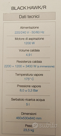 Generatore di vapore professionale Novaltec mod. Black Hawk/R per pulizia e sanificazione professionali con aspirazione e ricarica continua della caldaia.