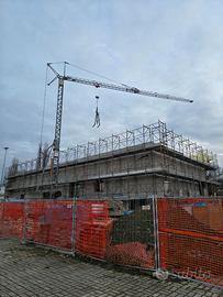 Gru Benedini B 620 ID anno di costruzione 1998 automontante, zincata e con alimentazione 220/380v , fornita di radio comando e pulsantiera a filo, zavorre e piedi di appoggio, altezza 17mt braccio 20mt con portata max 1300/600kg. Assali gommati con pneumatici in ordine.