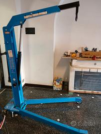 Gru idraulica a carrello pieghevole OMCN portata kg 500 nuova. La sua peculiarità è la possibilità di piegarsi in pochi secondi raggiungendo ingombri irrisori in fase di riposizione. Braccio mobile allungabile in 4 posizioni comandato da pompa idraulica