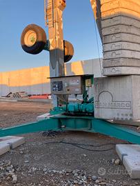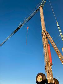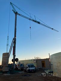 Gru automontante con braccio 35 m, altezza 22, portata in punta 1000 kg, portata max 4000 kg.