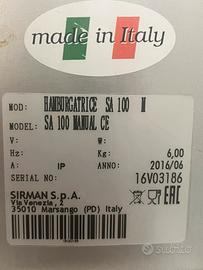 Vendo Hamburgatrice Sirman causa inutilizzo