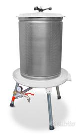 Sistema pratico e semplice per pressare frutta e purea vegetale, sfruttando la pressione dell'acqua. Utilizzando l'idropressa si ottiene una resa molto elevata nell'estrazione del succo di mele, uva e frutta in genere, in quanto la pressione si sviluppa uniformemente verso la gabbia esterna in tutta la sua lunghezza. Interamente costruita in acciaio inox AISI 304, base e coperchio in alluminio verniciato per i modelli da 20 - 40 - 80 - 160 Lt. Disponibile anche nella versione 300 e 450 Lt oppure IDROMIXER con frangitore incorporato. Scriveteci per info aggiuntive e prezzi.