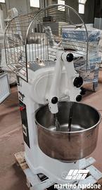 IMPASTATRICE A BRACCI TUFFANTI 45 KG IMPASTO TRIFASE 2 VELOCITà. Sono utilizzate nei laboratori di pasticceria, panificazione per lavorare paste molli quali impasti per prodotti dolciari, pane francese, pane carré, grissini, ecc. La vasca, la protezione antinfortunistica integrale, il blocco degli utensili impastatori sono in acciaio inox. Ingranaggi e manovellismi lavorano in bagno d'olio. Le innovazioni tecniche adottate nella costruzione fanno sì che questi modelli non richiedano una manutenzione specifica. Svolgono rapidamente gli impasti: possono essere forniti a due velocità senza o con temporizzatori. Il modello IBT 45 presenta una incastellatura in unico pezzo in fusione di ghisa così come sono in ghisa i bracci porta utensili.