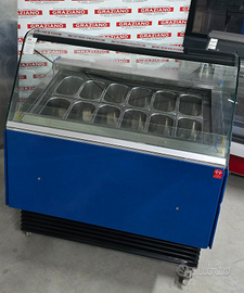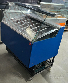 VETRINA VENTILATA gelateria/banco gelati professionale inox con UNITÀ REFRIGERANTE MONOFASE V220 A BORDO, capacità 12 vaschette da 26x16 (piccole).