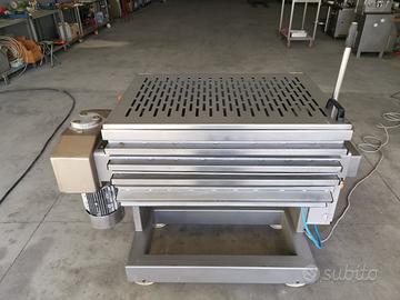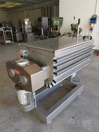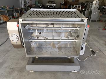 IMPASTATRICE VELATI 250Litri INOX USATA Per impasti da Salami, Salcicce, Sale e Droghe, mangimi o ripieni. Portata circa 180/200Kg a seconda del prodotto; Trasmissione a Riduttore con ingranaggi in bagno d'olio; Vasca Rinforzata per sostenere anche lavori pesanti; Pale fisse non smontabili, lavabili con idropulitrice ad acqua calda; Alimentazione 380v trifase Potenza 4Kw (5,5hp). Dimensioni: Lunghezza cm 160 Profondità cm 75 Altezza cm 119 + cm 35 del Manico La Macchina è stata prodotta nel 1988 e ancora perfettamente funzionante poiché la Meccanica è molto robusta. Abbiamo cambiato l'Olio del Riduttore, ricostruito il Coperchio INOX con microinterruttore di sicurezza NUOVI che mancavano adeguando tecnicamente la Macchina alle Normative CE. N.B. La Macchina è Fatturabile ma è sprovvista della Documentazione CE (Libretto Istruzioni con Dichiarazione di Conformità CE) che però all'occorrenza può essere commissionata ad un Ingegnere. Tale Perizia avrebbe un costo di Euro 2.000 + IVA e un Tempo di redazione di circa 45gg.