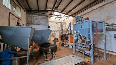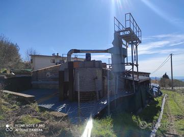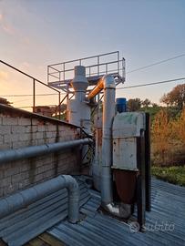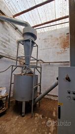 IMPIANTO COMPLETO PER LA PRODUZIONE DI PELLET DI LEGNO O VEGETALE 500-700 KG /H 1100ore di lavoro costituito da ; -500 quintali circa di segatura già pronta alla pellettizzazione faggio /castagno - ESSICATORE ROTATIVO A 3 VIE 1200KG/ORA con sonda di temperatura - CALDAIA 10 KW con sonda di temperatura ad alimentazione cippatino o pellet tramite TRAMOGGIA A COCLEA -BYPASS DI SICUREZZA -RENDLER (NASTRO TRASPORTATORE PER CARICO MATERIALE IMPIANTO) -N °2 CICLONE CON VALVOLA STELLARE PER FILTRAGGIO MATERIALE E FUMI E SONDA DI TEMPERATURA -TUBAZIONE MAGNETICA -RAFFINATORE A N° 48 MARTELLI KW 22- - CICLONE CON MINISILO N-SILO1200 ACCUMULO MATERIALE -COCLEA TRASPORTO MATERIALE -PELLETTATRICE KW 30 +1.65 MATR. N. 3218 SEPARATORE A COCLEA POLVERI /PELLET - LINEA DI INSACCAMENTO SEMI-AUTOMATICO MOD. N-COMPACT Composta da vibrovaglio -elevatore a tazze- ventole di raffreddamento- confezionatrice pneumatica e termosaldatrice a filo - SERIE TUBAZIONI E BOCCHETTE PER IMPIANTO DI ASPIRAZIONE COMPOSTO DA - N. 1 FILTRO ASPIRAZIONE POLVERI INDUSTRIALE 3 VIE 3KW - N.1 FILTRO ASPIRAZIONE POLVERI INDUSTRIALE 1 VIA 500W - QUADRO ELETTRICO CON PLC UNITRONICS CON INTEGRAZIONE PER GESTIONE COMPLETA IMPIANTO -QUADRI ELETTRICI -SERIE CAVI E CANALINE PER CABLAGGIO ELETTRICO -PIATTAFORMA IN METALLO PER ISPEZIONE CICLONI Compressore aria compressa 300 litri