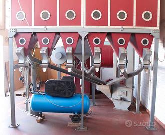 - Batteria silos per caffè tostato, di forma quadrata, di 6 scomparti, capacità massima 300 kg per scomparto, distributore di selezione scomparto;