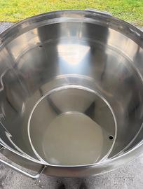 -Vasca coibentata di germinazione ed essiccazione in acciaio inox con doppio fondo, ruote, maniglia a scomparsa per movimentazione grani, coperchio ermetico con pozzetto campionamento, portonici di carico, scarico vapore, oblò con guarnizione alta temperatura e ingresso aria dedicato.