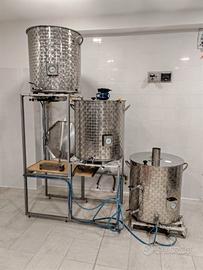 Cosa è compreso: Tino mash-filtro con pale rotanti meccaniche + fondo filtrante + piastra per lo sparge; Tino Sparge; Tino boil con tubature per Whirpool; Fermentatore troncoconico da 200 litri con Piastra refrigerante, Scambiatore Maxi XL saldobrassato; Struttura portante con fornelloni
