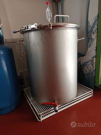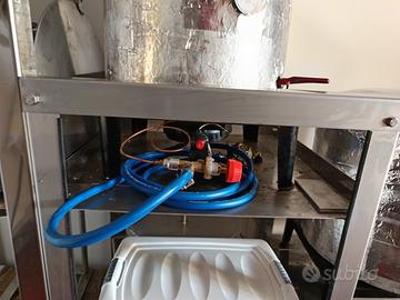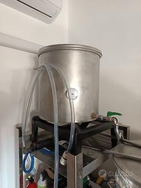 Impianto artigianale per la produzione di birra da 60 litri a tre tini; tutto in acciaio inox 316L con spessore 20/10.
