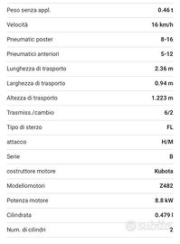 Vendo Kubota B1220 per inutilizzo , usato pochissimo con soli 469 h originali . Anno 2015 ma acquistato nel 2019 da fermo magazzino Kubota . Mezzo paragonabile al nuovo .