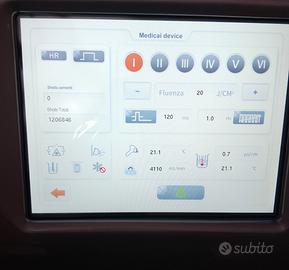 Laser ai diodi, Tre Frequenze a selezione automatica , in base al fototipo , adatto per centri estetici e Studi Medici , potenza 600W 40 J per centri estetici , modificabili per centri medici. Poca manutenzione solo cambio filtro, in base all' utilizzo da 3 a 6 mesi ,