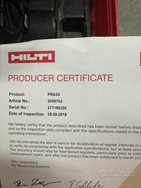 Vendo laser hilti pr 30 perfetto con possibilità di pendenza su asse x ! Perfettamente funzionante qualsiasi prova! Vendo per passaggio a laser doppia pendenza!