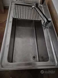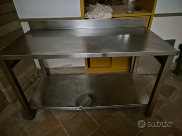 N 1 Lavello unica vasca completo di rubinetto 120×70 cm e ripiano inferiore acciaio resistente € 280,00 N.1 tavolo da lavoro in acciaio con alzatina e ripiano inferiore che presenta una piegatura € 230,00