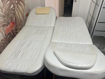 Vendo per cambio arredo due lettini per trattamenti/massaggi per centro estetico. Lettino in buono stato con materasso in buone condizioni e pelle integra. Si vendono tutti e due insieme al prezzo di 200€ (nuovo 500€ l'uno). Grazie.