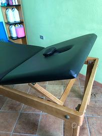 Lettino medico per visita, trattamenti e massaggi Moretti. Struttura in legno con schienale regolabile e foro facciale, in pelle nera. Portata 200 kg.