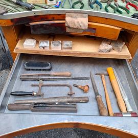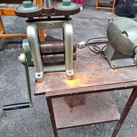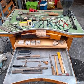 Cedesi importante lotto di attrezzi professionali per oreficeria, ideale per artigiani, studenti, restauratori o per allestire un laboratorio completo. Il lotto comprende: Banco da orefice professionale con cassetti e piano sagomato, completo di numerosi utensili manuali Pinze varie, tronchesi, tenaglie, lime, seghetti, martelli, punzoni, mandrini, spazzole e accessori assortiti Laminatoio manuale robusto per lavorazione metalli preziosi Micromotore / utensile rotativo flessibile con accessori Forno elettrico professionale da laboratorio con camera refrattaria, adatto a fusioni, smalti, trattamenti termici e lavorazioni tecniche Altri utensili e minuteria visibili in foto Condizioni: Materiale usato ma ben conservato, proveniente da laboratorio reale. Vendita preferibilmente in blocco. Ideale per: Orefici professionisti Nuove attività artigianali Scuole / corsi di gioielleria Hobbisti evoluti Prezzo: Da concordare / Offerta interessante per acquisto in blocco Consegna: Ritiro di persona consigliato vista la quantità e il peso delle attrezzature. Contatto: Per informazioni, foto dettagliate o visione senza impegno, contattami in privato.