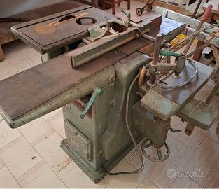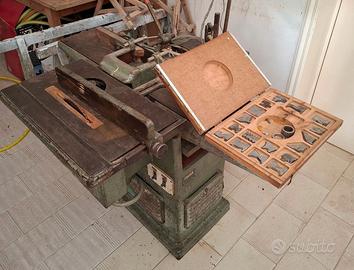 Macchina per falegname hobbista e professionale, completa di pialla, spessoratrice , sega, punzeratore, scorniciatrice. Completa di tutte le lame per qualsiasi tipo di lavorazione, intarsi , fregi, e quant'altro. Funzionante con energia elettrica a 220 V. Acquistata da mio padre, provetto falegname e intarsiatore negli anni 60, macchina di elevata robustezza . Dimensioni : Lungh. 180, Larghezza a piena apertura 150, Altezza 110.
