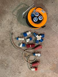 Cavi prolunga varie metrature con spine CEE ( quelle rosse e blu).