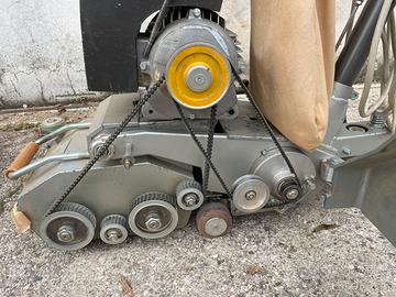 1 Macchina sgrossatrice marca Cosma 380V, con 2 inverter per usarla in ambiente domestico 220V, corredata di rulli abrasivi allo zirconio di varie grane.