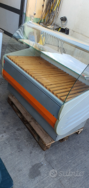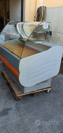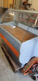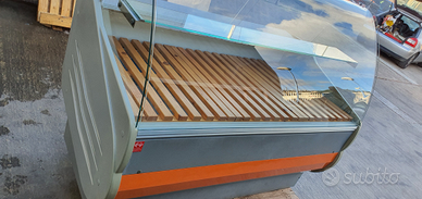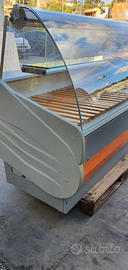 BANCO PANE/vetrina neutra panetteria/arredo panificio/arredamento pane da cm 150 con doghe in legno interne e illuminazione. Vetri curvi e ruote, marca TECNODOM.