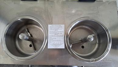 Mantecatore Professionale Ideale per la ristorazione, per lavorare e mantenere 2 gusti in contemporanea, capacità 5+5 lt. 4 ruote piroettanti con freno