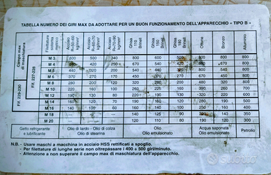 Vendo maschiatore per trapano a colonna con frizione e inversione automatica usato poco in ottime condizioni con scatola e libretto originali. Se interessati veramente il prezzo è trattabile. Consegna da concordare.