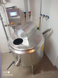 Minipolivalente Plevnik capacità 100 lt, usata solo tre mesi per passaggio a stessa macchina ma da 300 lt, riscaldamento con acqua calda o resistenze elettriche, raffreddamento con acqua, gestibile da remoto,possibilità di produrre formaggi, ricotta, yogurt, latte pastorizzato, panne cotte ecc.