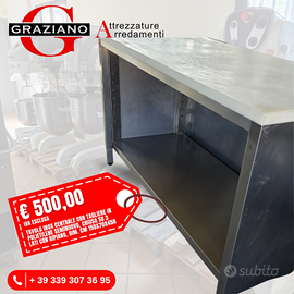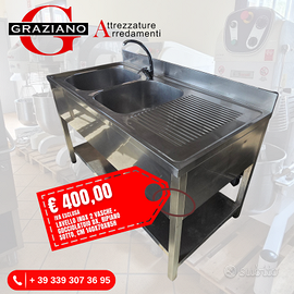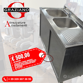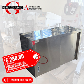 PENSILE INOX STRUTTURA/TAVOLO ARMADIATO/TAVOLO NEUTRO INOX APERTO/PENSILE SCORREVOLE/TAVOLO CENTRALE/LAVELLO INOX/LAVABO 2 VASCHE/LAVELLO 1 VASCA GOCCIOLATOIO/CEPPO POLIETILENE TAGLIERE SU GAMBE INOX/LAVELLO INOX QUADRATO