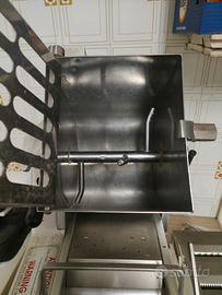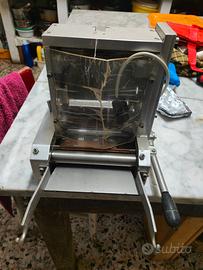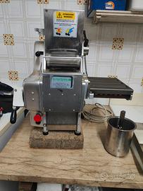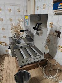 Macchina per pasta fresca la monferrina P-nuova con impastatrice, gruppo tagliatelle e gruppo ravioli. Ferma da un po di tempo ma perfettamente funzionante. Il gruppo ravioli ha la protezione in plexiglas venata ma funziona. Disponibile per qualsiasi prova, spedisco previo accordo.