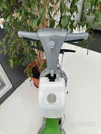 Tra le caratteristiche tecniche di questa macchina spiccano il numero di giri della spazzola, che raggiunge i 190 giri/min, e una pista di lavoro fino a 330 mm, ideale per la pulizia di superfici medio piccole.