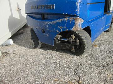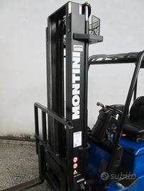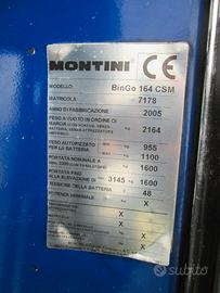 Muletto elettrico della Montini modello 164 CSM Bingo del 2005 con 6145, completo di sistema dei movimenti con Joystick (confort e maneggevolezza). Carro duplex altezza max 3145 forche da 120 cm, pacco batterie da 48 volt ancora al 80 percento. Completo di certificato CE e del registro manutenzioni sino al febbraio 2024. Prezzo oltre iva