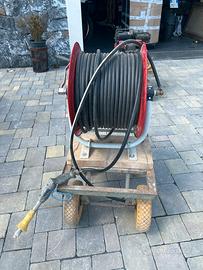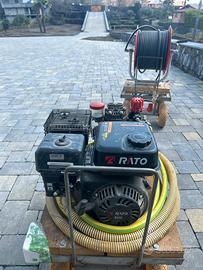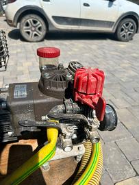 Vendo a casa inutilizzo un ottima e performante moto pompa, composta nel seguente modo : 1º Carrello a 4 ruote con base in legno con sopra fissata la moto pompa che ha un potente motore Rato R210 a benzina. Con possibilità di regolare l'aria, aprire e chiudere il condotto della benzina, regolare la potenza del motore e tasto on/off. Collegato al motore abbiamo l'altra parte della moto pompa. Qui abbiamo la possibilità di dividere in due canali, cioè in due tubazioni allo stesso momento il trattamento che stiamo irrorando. La possibilità di gestire la pressione desiderata da una manovella e il controllo della pressione tramite un manometro. Compreso già di tubi e filtro finale. Nel 2º Carrello abbiamo sempre 4 ruote e una base di legno a cui è fissato un solido avvolgi tubo con maniglia totalmente in metallo. Avvolto c'è un tubo ad alte pressioni/prestazioni che regge fino a ben 40 Bar della lunghezza di 100 metri a cui è attaccata una pistola in cui si possono regolare diverse ampiezze del getto che vorremo utilizzare e il blocco per tenere il grilletto sempre aperto in modo da non dover tenere sempre sotto pressione le dita. La moto pompa ha solo 100 ore a stento di utilizzo, quindi è praticamente nuova. Prezzo 900? leggermente trattabili. Per qualunque info non esitate a contattarmi.