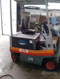 Muletto elettrico Om Portata Max. 1500 kg Batterie ottimo stato Alzata max. 4 metri Lunghezza forche 1200 mm Traslatore Peso complessivo 2300 kg. Completo di dispositivi di sicurezza