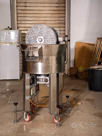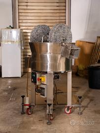 mulino riscaldato con regolatore di velocità, realizzato artigianalmente, per la produzione di cioccolato, pasta/burro di: nocciola, gianduja, pistacchio, mandorla, arachidi, olive ecc.. Capacità da 5 a 20 kg;