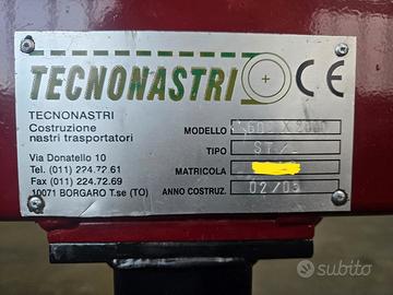 Vendo causa cambio attività nastro trasportatore Tecnonastri, misure 600X2000, altezza regolabile. Usato revisionato, marchiato CE.