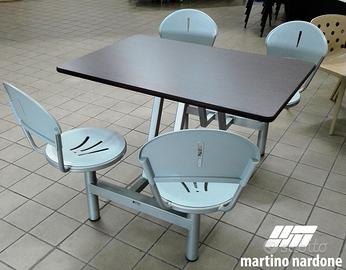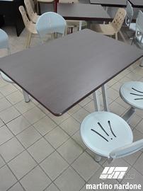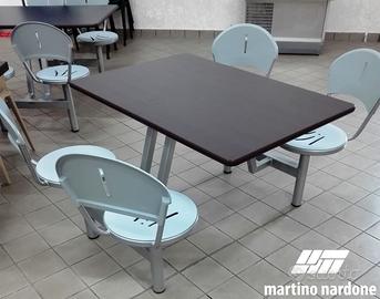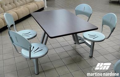 PANCA COMPLETA DI N°4 SEDUTE GIREVOLI. DIMENSIONE PIANO 120X80. STRUTTURA PANCA ALLUMINIO. TOP LAMINATO COLORE WENGè. MARCA: ARMETAL CONDIZIONE: NUOVA