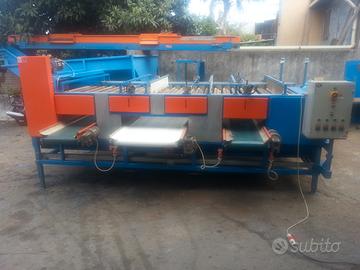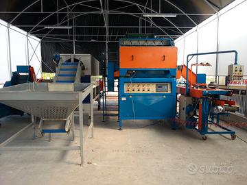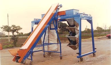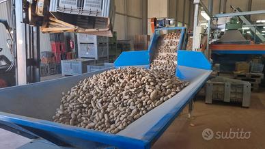 IMPIANTO LAVORAZIONE PATATE COMPOSTO DA: ALIMENTATORE A BUNKER 40 Q.DOPPIO NASTRO A FLUSSO E VELOCITA' VARIABILE ,LETTORE OTTICO-STERRATORE A RULLI ,PRECALIBRO,BANCO DI SELEZIONE A RULLI DA M.2,-CALIBRATORE A RULLI APERTURA A BANDIERA 4 SETTORI REGOLABILE PER PEZZATURA SETTORIALMENTE- SPAZZOLATRICE-PESATRICE INSACCATRICE ELETTRONICA, RIEMPISACCONE DOPPIO AUTOMATICO. SEMIAUTOMATICA PER CONFEZIONI DA 3 A 25 KG.- INSACCATRICE PER SACCHI PREFORMATI IN BOBINA-LAVATRICE A TUNNEL CONTINUA-PESATRICE COMPUTERIZATA 12 BILANCE DOPPIO NASTRO ,PER SCARICO DEX-SIX CON POSSIBILITA'DI ALIMENTARE 2 INSACCATRICI IN CONTEMPORANEA.