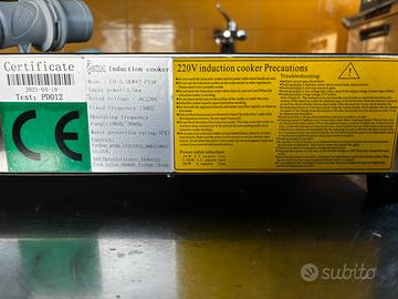 Piastra a induzione professionale con 2 fuochi , ideale per cucina da ristorante, showcooking e catering .