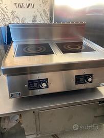 Trattasi di piastra elettrica usata poco da tavolo in acciaio inox. È incluso tavolo sempre in acciaio inox con due ante a scorrere per riporre materiale.