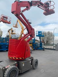 Piattaforma aerea usata semovente a braccio HAULOTTE H12IP, elettrica, anno 2016. Raggiunge 12mt di lavoro con uno sbraccio massimo di 6,5mt ed è larga solamente 1,35mt; ideale per spostarsi in spazi ridotti. Totalmente funzionante, controllata, tagliandata, con BATTERIE NUOVE e motori revisionati. Ore di lavoro 264, venduta pronta all'uso completa di tutti i documenti: dichiarazione di conformità CE, manuale uso e manutenzione, immatricolazione Inail e verbale di verifica periodica in corso di validità.