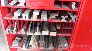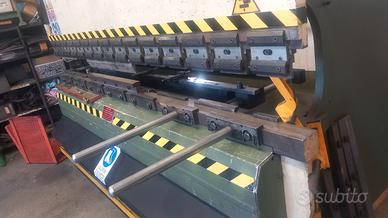 PRESSA PIEGATRICE SCHIAVI-AMADA RG 103 tavola da 3100mm Forza 100 ton. .Macchina funzionante e completa di stampi inferiori e superiori.. battuta posteriore a movimento manuale comoda e veloce per lavori in quantità... Tuttora collegata per prove