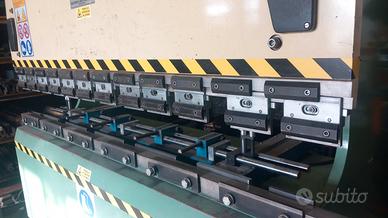 PRESSA PIEGATRICE SCHIAVI PROMECAM ITS 80.25 TAVOLA DA 2500MM FORZA TON 80 CONTROLLO CNC MECOS SU ASSE X Y FUNZIONANTE E COMPLETA DI STAMPI INFERIORI E SUPERIORI TUTTORA COLLEGATA PER PROVE DI PIEGA