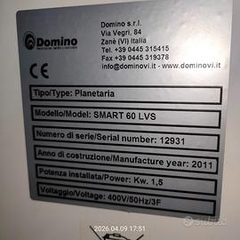 Vendesi impastatrice planetaria Domino modello SMART 60 LVS (capacità 60 litri). La macchina è un vero mulo da lavoro, robusta e affidabile, ideale per pasticcerie e panifici che necessitano di precisione e potenza. La macchina è stata utilizzata con cura e si presenta in buone condizioni estetiche e meccaniche. Negli ultimi anni è stata a riposo in ambiente asciutto e protetto, mantenendo intatta la sua efficienza. Viene venduta esclusivamente per passaggio a modello più capiente. PUNTI DI FORZA E DOTAZIONE: Questa offerta è ideale per chi cerca un pacchetto completo senza dover acquistare costosi accessori a parte: 2 Vasche in Acciaio Inox da 60 Litri: Fondamentali per lavorare a ciclo continuo (mentre una vasca è in lievitazione o pulizia, l'altra lavora). Set 5 Utensili Professionali: 3 Fruste a filo (per diverse densità di montata). 1 Gancio a spirale (per impasti lievitati). 1 Spatola/Foglia (per frolle, masse battute e creme). Variatore di Velocità Elettronico (LVS): Permette una regolazione millimetrica dei giri, superiore ai classici cambi meccanici. Manuale d'istruzioni originale incluso. DATI TECNICI: Alimentazione: Trifase 400V / 1,5 Kw. Anno: 2011. Sicurezza: Griglia di protezione sollevabile a norma CE. NOTE PER LA VENDITA: La macchina è visionabile e disponibile per qualsiasi prova di accensione. Dato il peso della struttura, il ritiro è a carico dell'acquirente