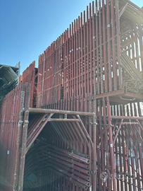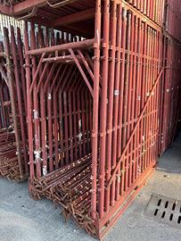 Ponteggio Marcegaglia Fap verniciato 684 telai corredati 3093 correnti in esubero 852 diagonali in esubero 17 portatelai 195 tavole metalliche 50x180 16 tavole metalliche 33x180 100 tavole metalliche 20x180 10 telaio ridotto 37 terminali 2mt 45 rinforzo per terminale 60 asta parapetto 1mt 24 partenza stretta inferiore 24 partenza stretta superiore 400 cancelletti di testata 1178 fermapiedi 52 terminali 3mt Reda