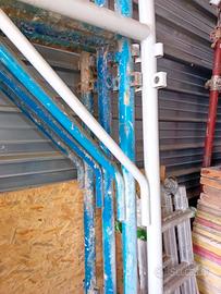 Vendo ponteggio n° sei cavalletti, completo di: bastoni, diagonali, 3 botole, 3 pedane, 3 scalette, parapetto, battitacco, ruote e piedini.